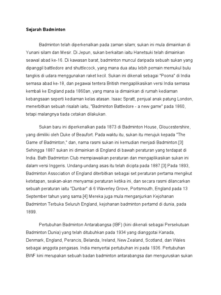 Sejarah badminton badminton telah diperkenalkan pada zaman silam; badminton malaysia. Sejarah badminton badminton telah diperkenalkan pada zaman silam;